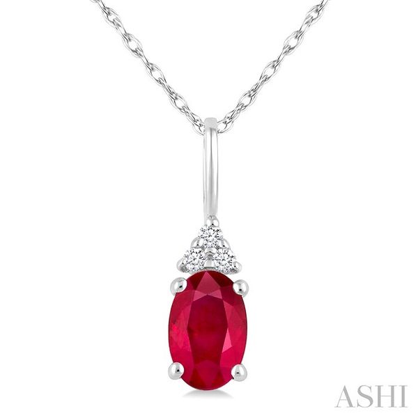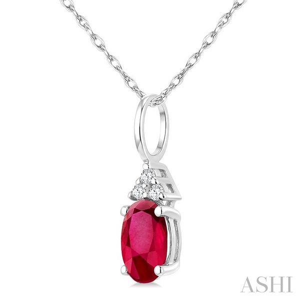 1/50 Ctw Oval Cut 6X4 MM Ruby and Round Cut Diamond Precious Pendant With Chain in 14K White Gold Image 2 Becker's Jewelers Burlington, IA