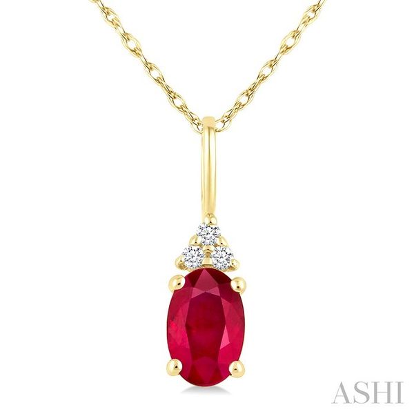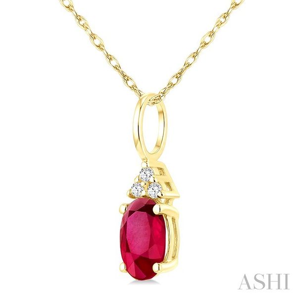 1/50 Ctw Oval Cut 6X4 MM Ruby and Round Cut Diamond Precious Pendant With Chain in 14K Yellow Gold Image 2 Becker's Jewelers Burlington, IA