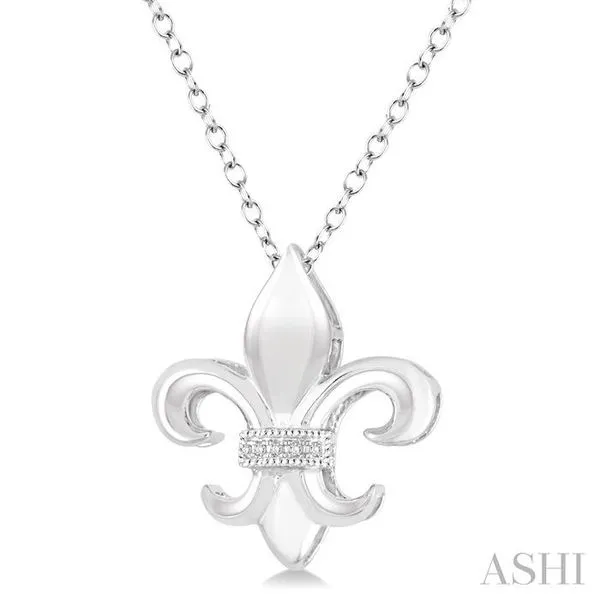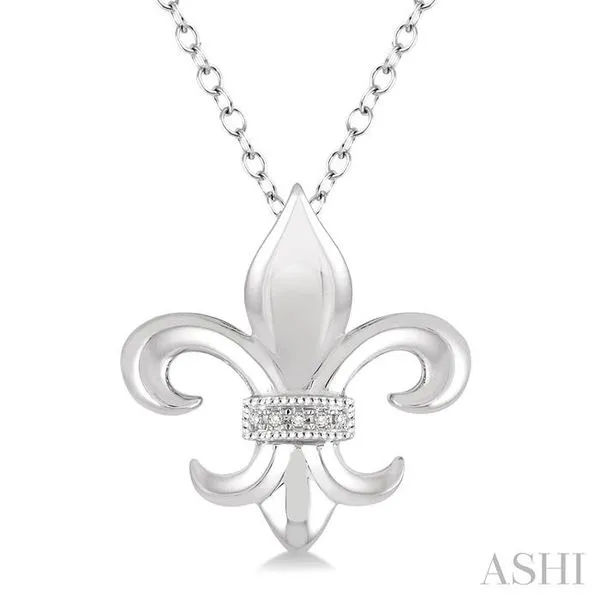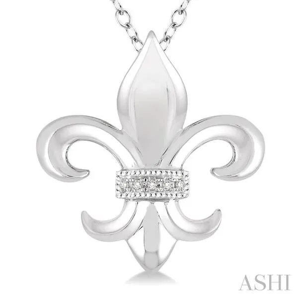 1/50 Ctw Round Cut Diamond Fleur De Lis Pendant in Sterling Silver with Chain Image 2 Becker's Jewelers Burlington, IA