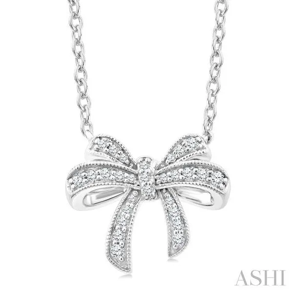 (319) 752-31961/6 Ctw Bow Single Cut Diamond Petite Fashion Pendant With Chain in 10K White Gold