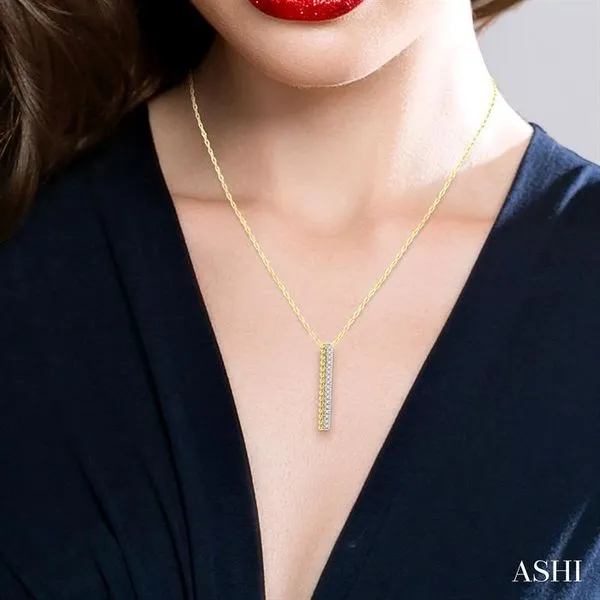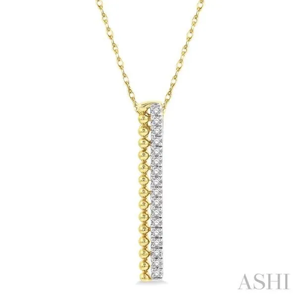 (319) 752-31961/6 Ctw Circular Bead & Round Cut Diamond Bar Pendant With Chain in 14K Yellow Gold