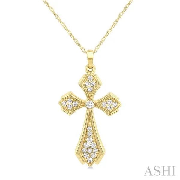 (319) 752-31961/6 Ctw Cross Round Cut Diamond Fashion Pendant With Chain in 10K Yellow Gold
