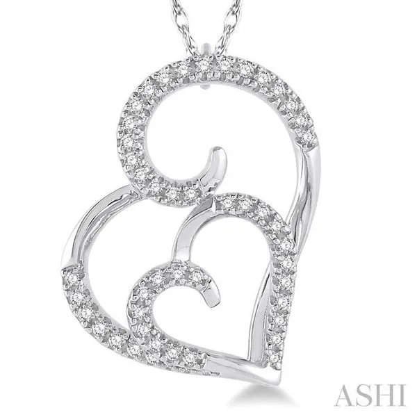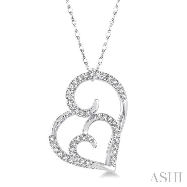 (319) 752-31961/6 Ctw Double Heart Round Cut Diamond Pendant With Link Chain in 10K White Gold