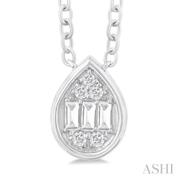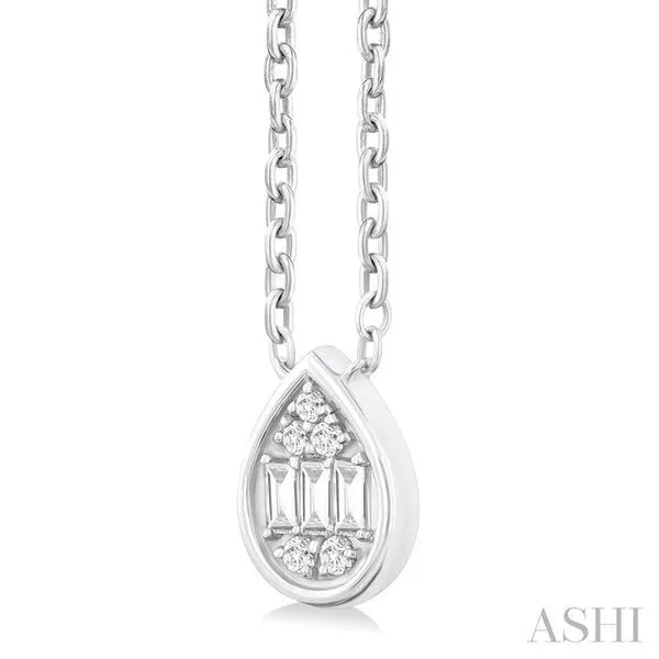 (319) 752-31961/6 Ctw Petite Bezel Set Pear Shape Fusion Baguette and Round Cut Diamond Fashion Pendant With Chain in 10K White Gold