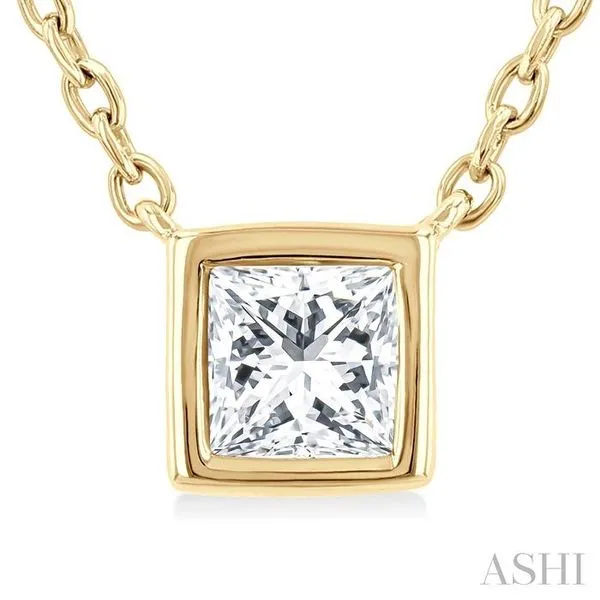 (319) 752-31961/6 Ctw Petite Bezel Set Princess Cut Diamond Fashion Pendant With Chain in 10K Yellow Gold