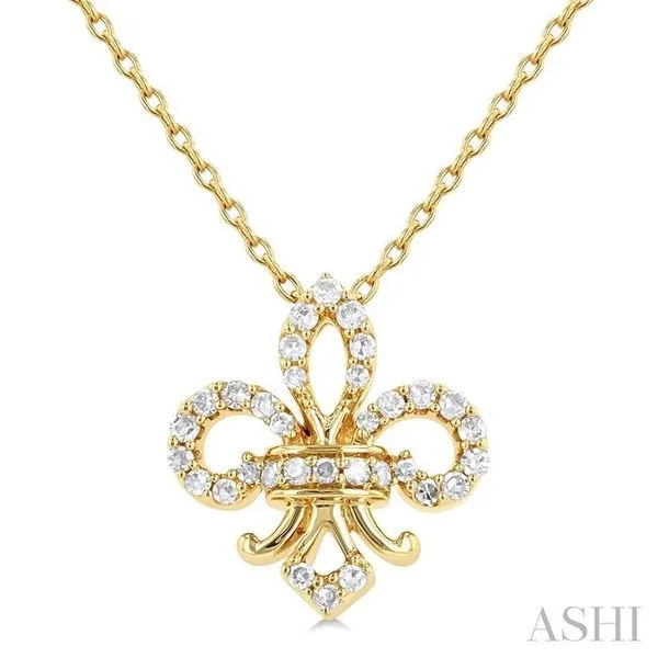 (319) 752-31961/6 Ctw Petite Fleur De Lis Round Cut Diamond Fashion Pendant With Chain in 10K Yellow Gold