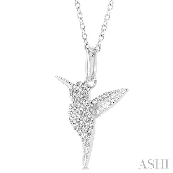 1/6 Ctw Petite Hummingbird Round Cut Diamond Fashion Pendant With Chain in 10K White Gold Image 3 Becker's Jewelers Burlington, IA