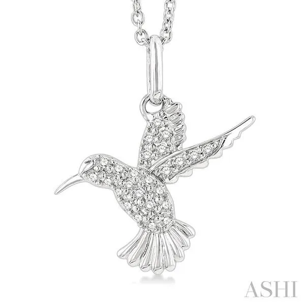 1/6 Ctw Petite Hummingbird Round Cut Diamond Fashion Pendant With Chain in 10K White Gold Image 2 Becker's Jewelers Burlington, IA