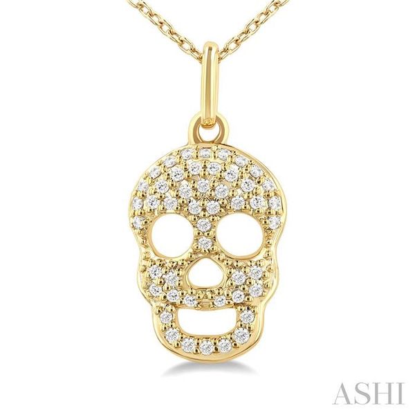 1/6 Ctw Petite Skull Round Cut Diamond Fashion Pendant With Chain in 10K Yellow Gold Image 3 Becker's Jewelers Burlington, IA