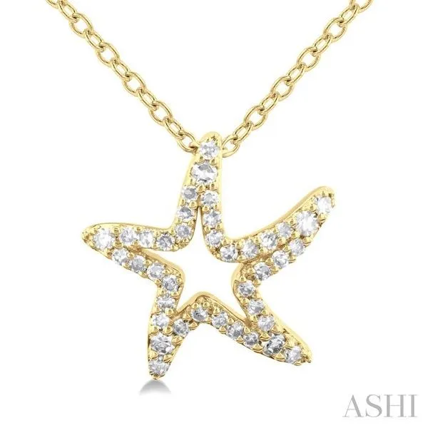 (319) 752-31961/6 Ctw Petite Starfish Frame Round Cut Diamond Fashion Pendant With Chain in 10K Yellow Gold