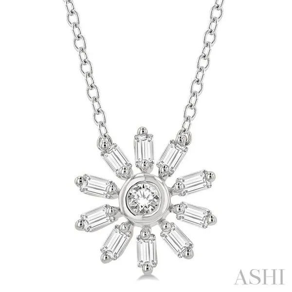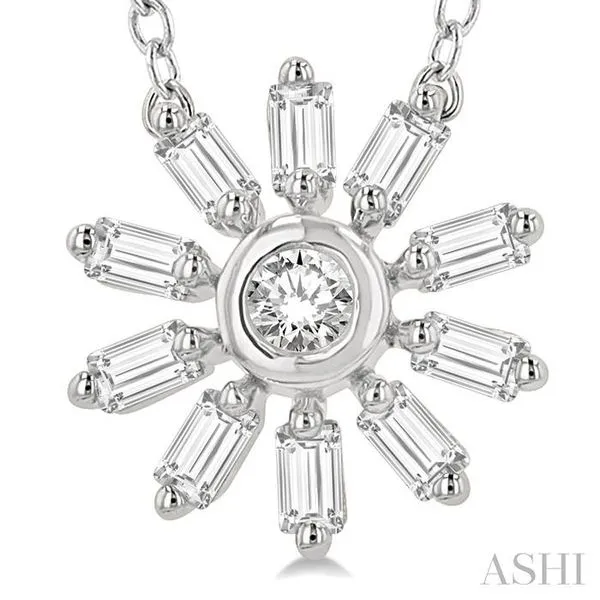 (319) 752-31961/6 Ctw Petite Wheel Baguette and Round Cut Diamond Fashion Pendant With Chain in 10K White Gold