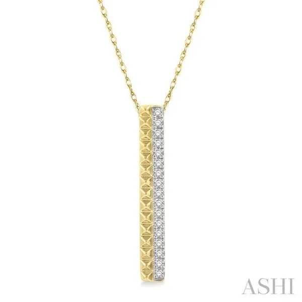 (319) 752-31961/6 Ctw Pyramid Round Cut Diamond Bar Pendant With Chain in 14K Yellow Gold