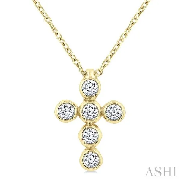 (319) 752-31961/6 Ctw Round Cut Diamond 6-Stone Bezel Set Cross Pendant With Chain in 14K Yellow Gold