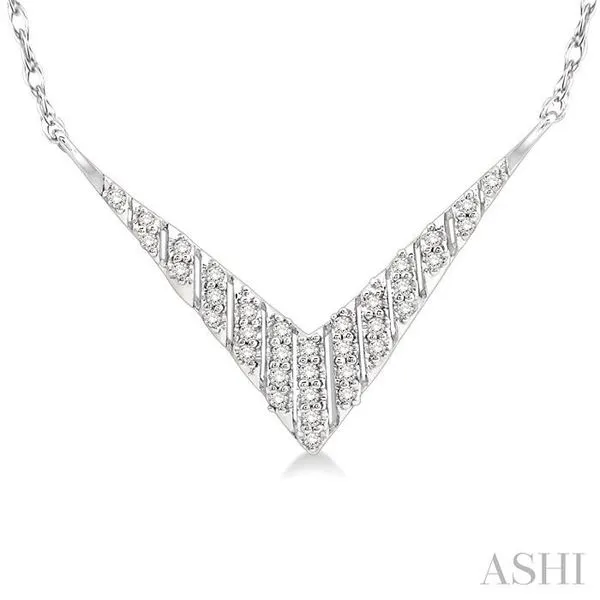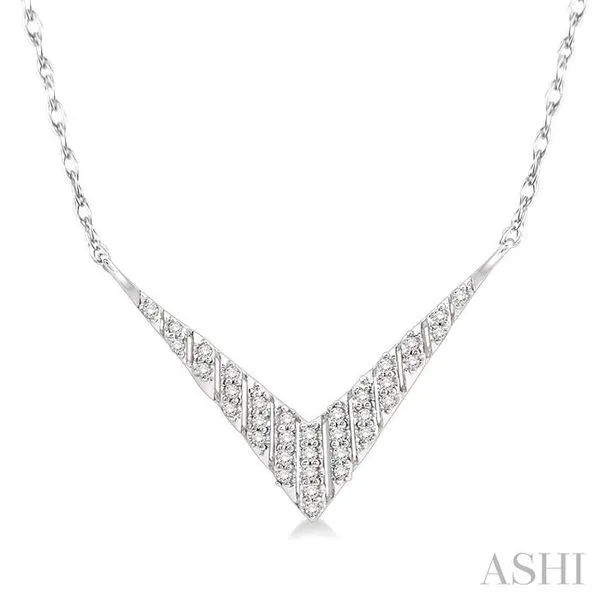 (319) 752-31961/6 Ctw Round Cut Diamond Chevron Necklace in 10K White Gold