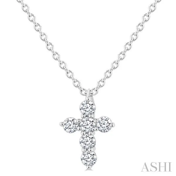 1/6 Ctw Round Cut Diamond Christian Cross 6-Stone Fashion Pendant With Chain in 14K White Gold Becker's Jewelers Burlington, IA