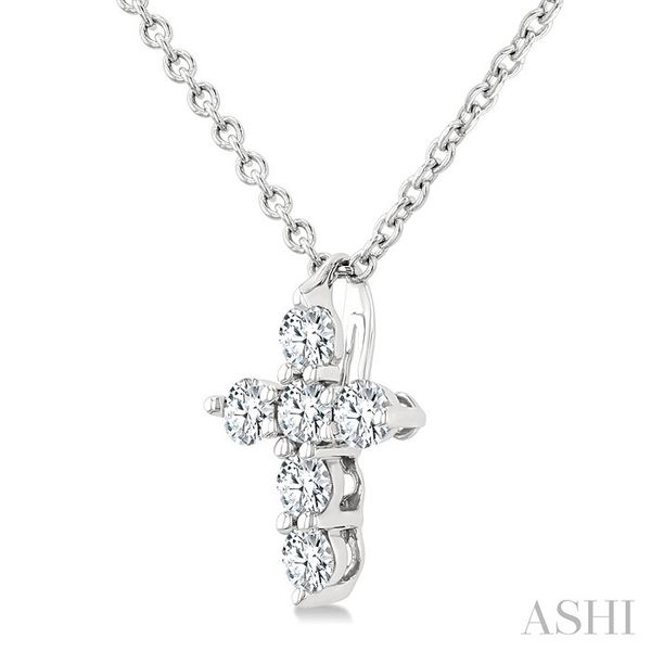 1/6 Ctw Round Cut Diamond Christian Cross 6-Stone Fashion Pendant With Chain in 14K White Gold Image 3 Becker's Jewelers Burlington, IA