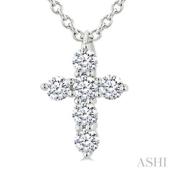 1/6 Ctw Round Cut Diamond Christian Cross 6-Stone Fashion Pendant With Chain in 14K White Gold Image 2 Becker's Jewelers Burlington, IA