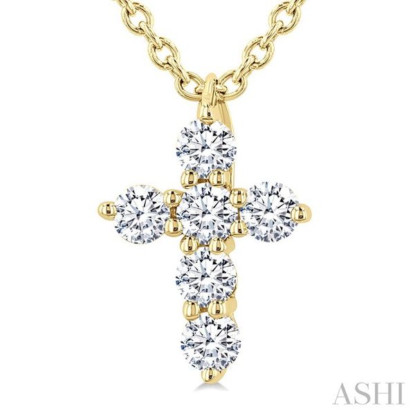 1/6 Ctw Round Cut Diamond Christian Cross 6-Stone Fashion Pendant With Chain in 14K Yellow Gold Image 2 Becker's Jewelers Burlington, IA