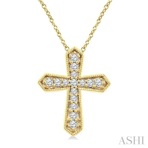 (319) 752-31961/6 Ctw Round Cut Diamond Cross Petite Fashion Pendant With Chain in 10K Yellow Gold
