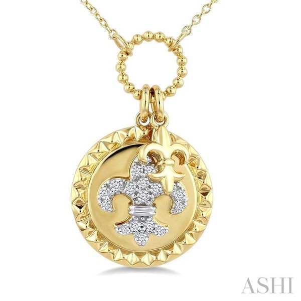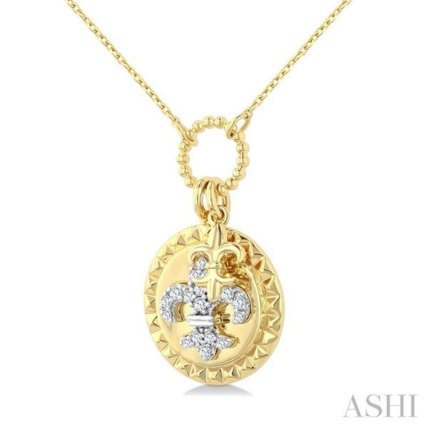 1/6 Ctw Round Cut Diamond Fleur De Lis Charm Circular Medallion Fashion Pendant With Chain in 10K Yellow Gold Image 3 Becker's Jewelers Burlington, IA