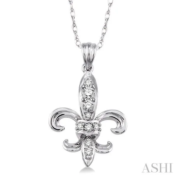 (319) 752-31961/6 Ctw Round Cut Diamond Fleur De Lis Pendant in 14K White Gold with Chain