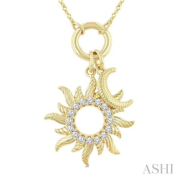 (319) 752-31961/6 Ctw Sunrays & Moon Charm Round Cut Diamond Pendant With Chain in 10K Yellow Gold