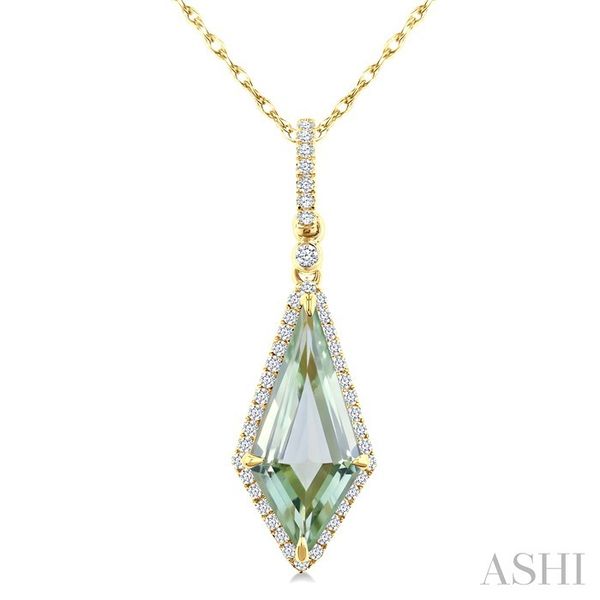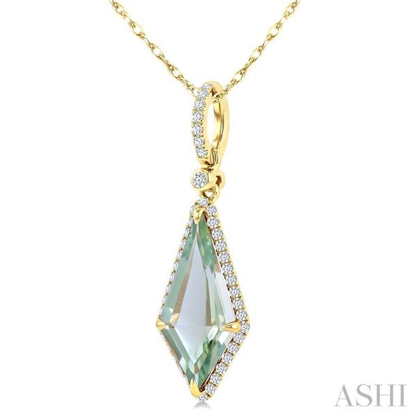 16X7 MM Kite Shape Green Amethyst and 1/5 Ctw Round Cut Diamond Semi-Precious Pendant With Chain in 10K Yellow Gold Image 3 Becker's Jewelers Burlington, IA