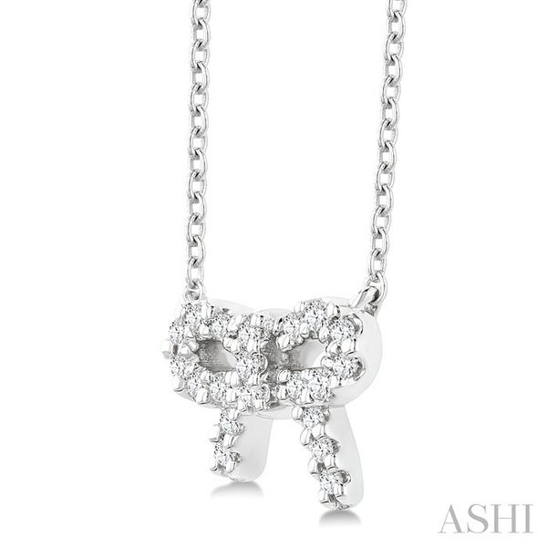 1/8 Ctw Bow Round Cut Diamond Petite Fashion Pendant With Chain in 10K White Gold Image 2 Becker's Jewelers Burlington, IA