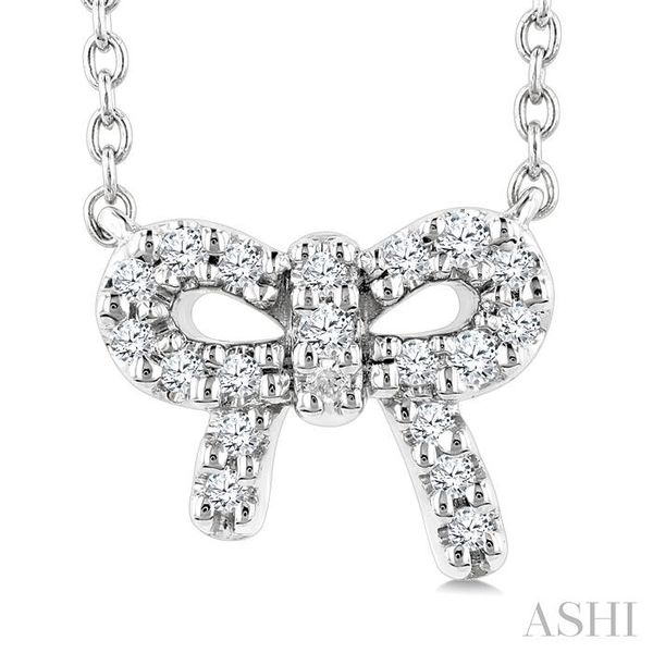 1/8 Ctw Bow Round Cut Diamond Petite Fashion Pendant With Chain in 10K White Gold Image 3 Becker's Jewelers Burlington, IA