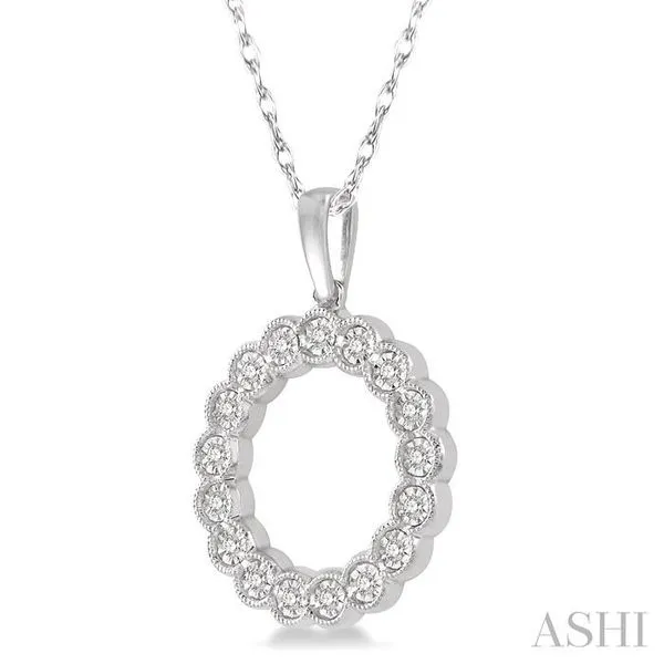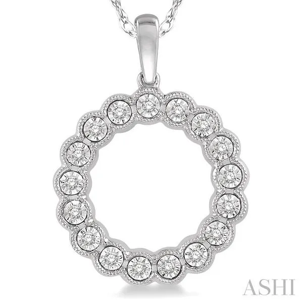 (319) 752-31961/8 Ctw Circular Lattice Halo Round Cut Diamond Fashion Pendant in 10K White Gold with chain