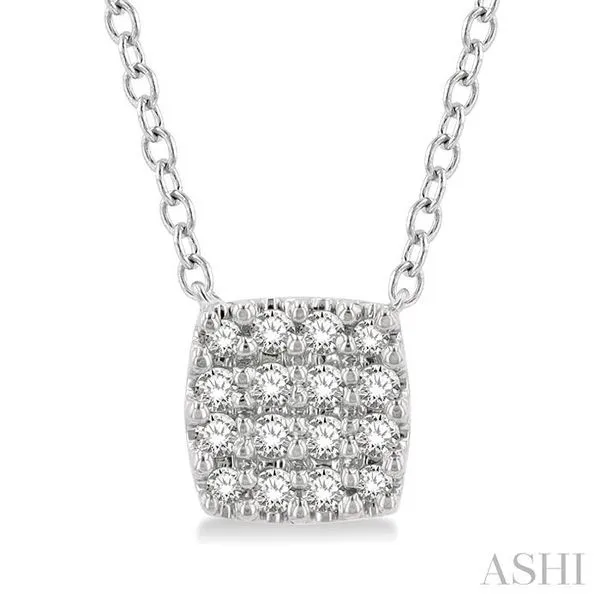 (319) 752-31961/8 Ctw Cushion Shape Round Cut Diamond Petite Fashion Pendant With Chain in 10K White Gold