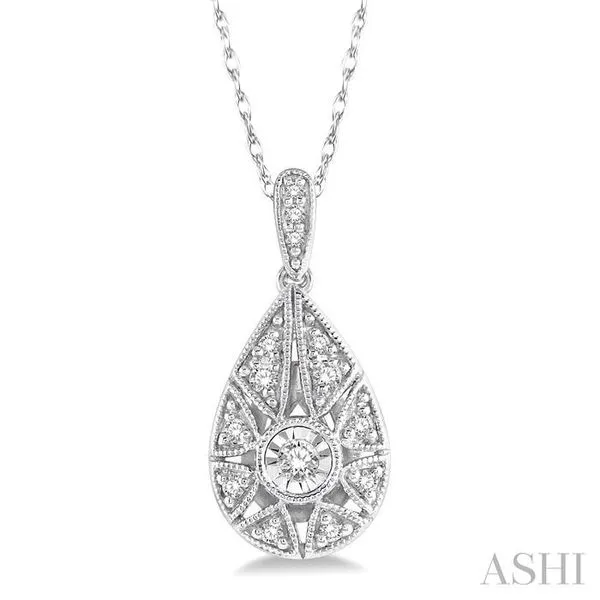 (319) 752-31961/8 Ctw Lattice Pear Shape Round Cut Diamond Pendant With Chain in 10K White Gold