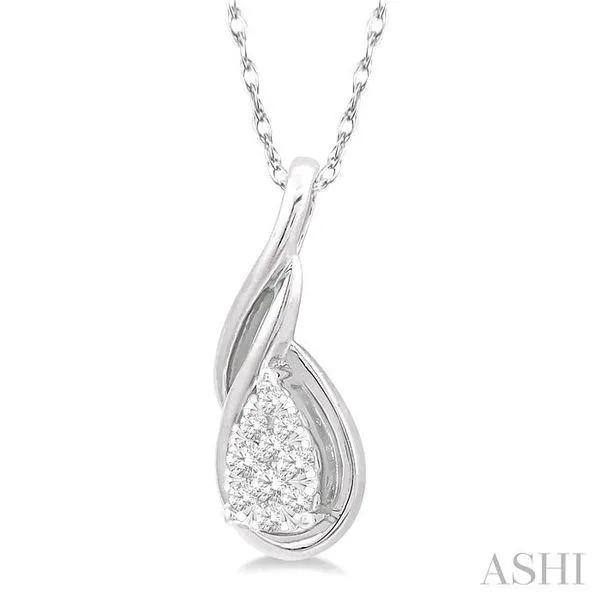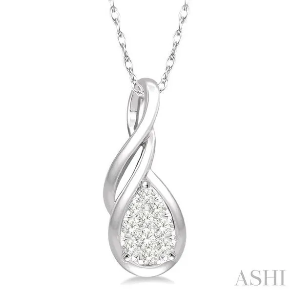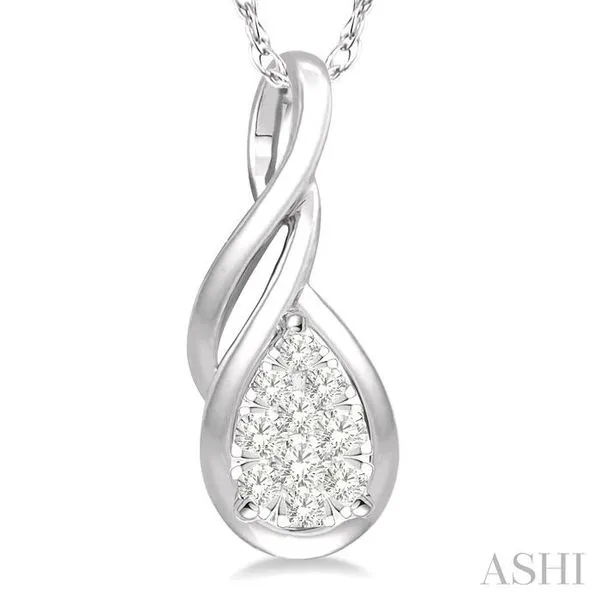 (319) 752-31961/8 Ctw Pear Shape Lovebright Entwined Wire Round Cut Diamond Pendant With Link Chain in 14K White Gold