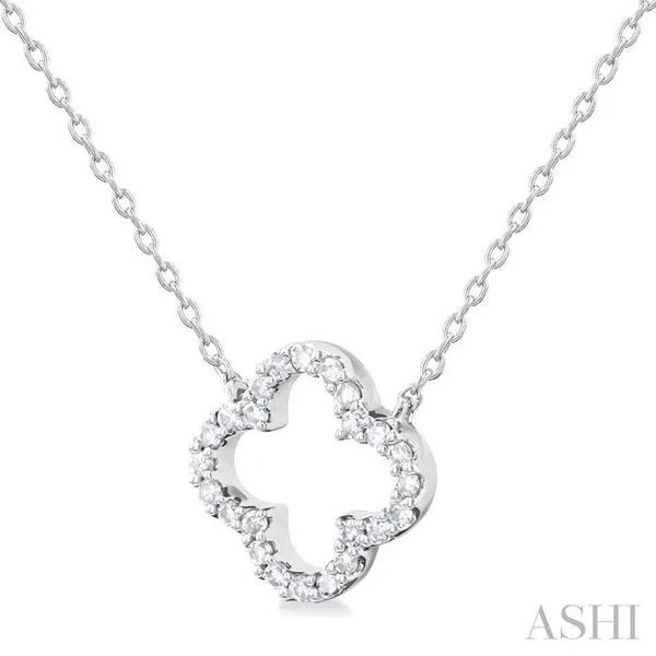 (319) 752-31961/8 Ctw Petite Clover Round Cut Diamond Fashion Pendant With Chain in 10K White Gold
