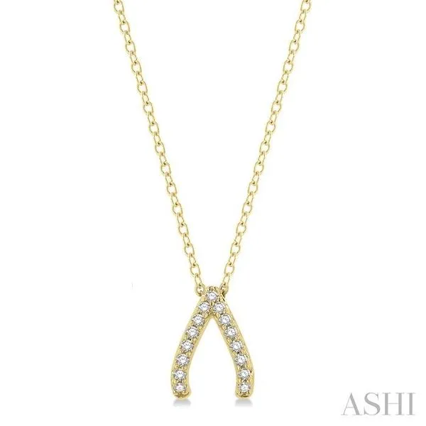 (319) 752-31961/8 Ctw Petite Wishbone Diamond Pendant in 10K Yellow Gold with Chain