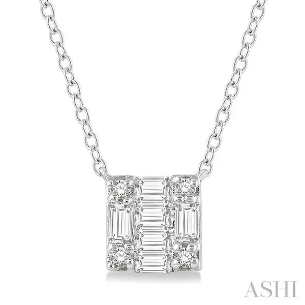 (319) 752-31961/8 Ctw Square Shape Baguette and Round Cut Diamond Petite Fashion Pendant With Chain in 14KWhite Gold