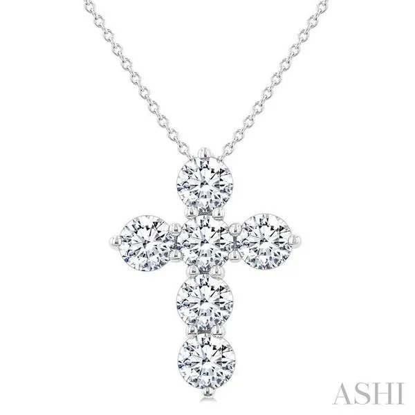 (319) 752-31962 Ctw Round Cut Diamond Christian Cross 6-Stone Fashion Pendant With Chain in 14K White Gold