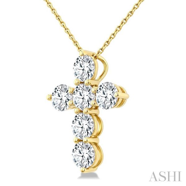 2 Ctw Round Cut Diamond Christian Cross 6-Stone Fashion Pendant With Chain in 14K Yellow Gold Image 3 Becker's Jewelers Burlington, IA