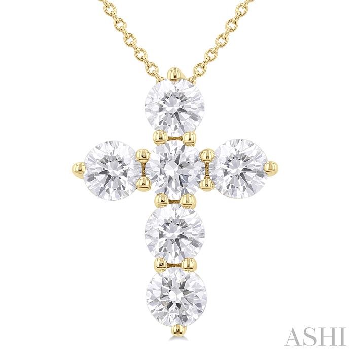 2 Ctw Round Cut Diamond Christian Cross 6-Stone Fashion Pendant With Chain in 14K Yellow Gold Image 3 Becker's Jewelers Burlington, IA