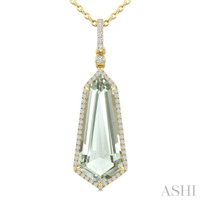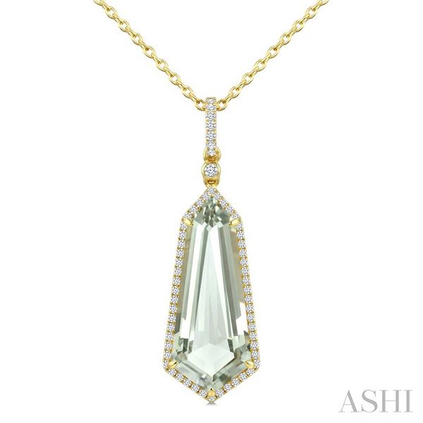 22X9 MM Shield Shape Green Amethyst and 1/4 Ctw Round Cut Diamond Semi-Precious Pendant With Chain in 14K Yellow Gold Image 3 Becker's Jewelers Burlington, IA