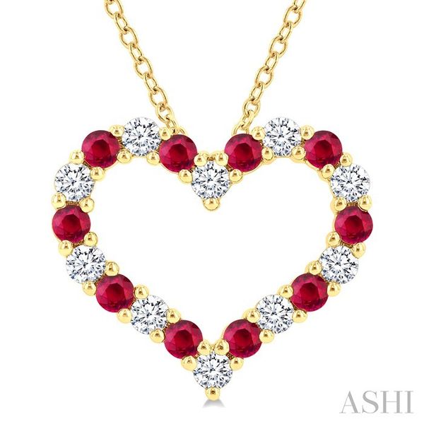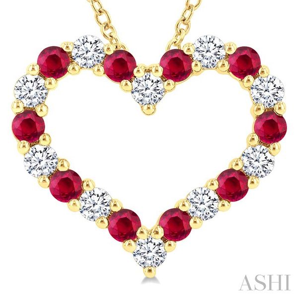 2.3 MM Round Cut Ruby and 1/2 Ctw Open Heart Round Cut Diamond Precious Fashion Pendant With Chain in 14K Yellow Gold Image 2 Becker's Jewelers Burlington, IA