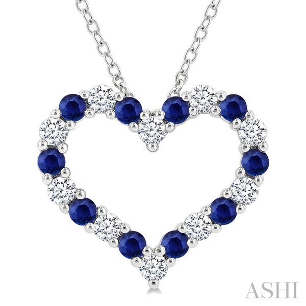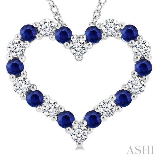 2.3 MM Round Cut Sapphire and 1/2 Ctw Open Heart Round Cut Diamond Precious Fashion Pendant With Chain in 14K White Gold Image 2 Becker's Jewelers Burlington, IA