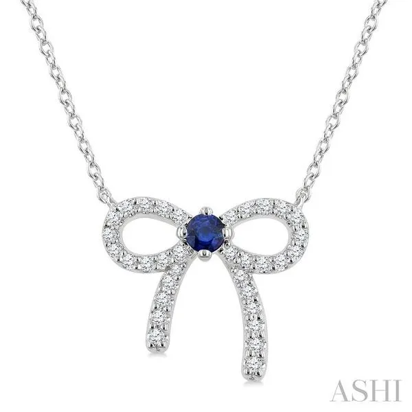 (319) 752-31962.40 MM Round Shape Sapphire and 1/8 Ctw Bow Round Cut Diamond Fashion Pendant With Chain in 10k White Gold