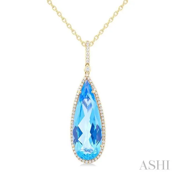 (319) 752-319626x9 MM Pear Cut Blue Topaz and 1/4 Ctw Round Cut Diamond Halo Semi-Precious Pendant With Chain in 14K Yellow Gold