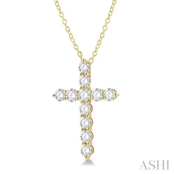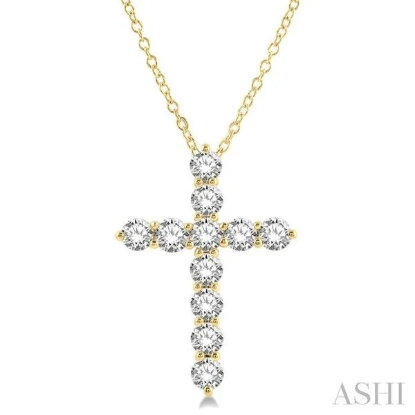 (319) 752-31963 Ctw Latin Cross Round Cut Diamond Pendant With Chain in 14K Yellow Gold