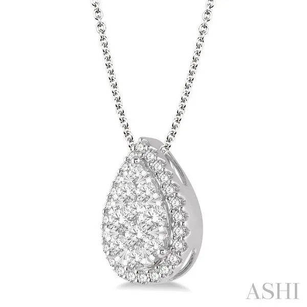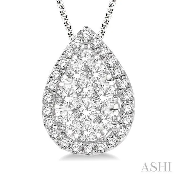 (319) 752-31963/4 Ctw Pear Shape Lovebright Round Cut Diamond Pendant With Chain in 14K White Gold