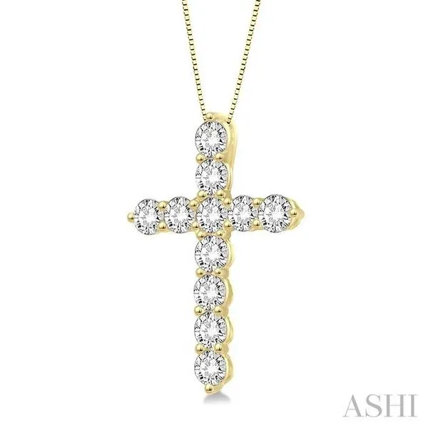 (319) 752-31963/4 Ctw Round Cut Diamond Cross Pendant in 14K Yellow Gold with Chain