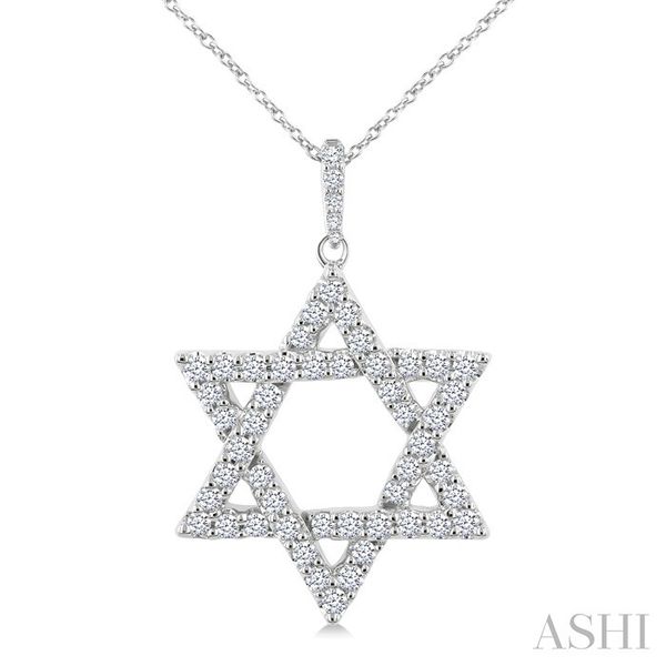 3/4 Ctw Star of David Round Cut Diamond Fashion Pendant With Chain in 14K White Gold Image 3 Becker's Jewelers Burlington, IA