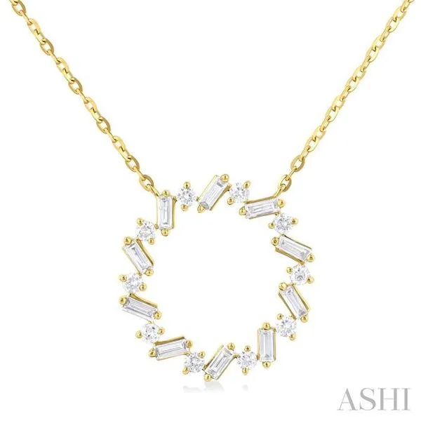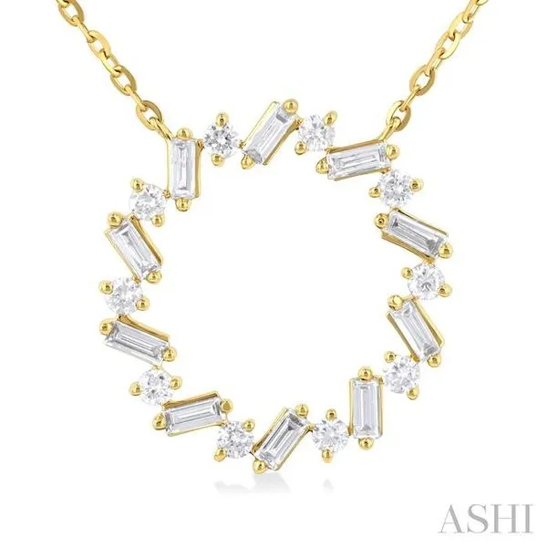 (319) 752-31963/8 Ctw Circle Baguette and Round Cut Diamond Scatter Pendant With Chain in 10K Yellow Gold