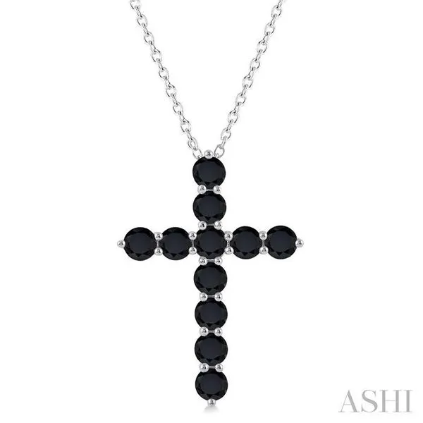 (319) 752-31964 7/8 Ctw Cross Round Cut Black Diamond Fashion Pendant With Chain in 14K White Gold